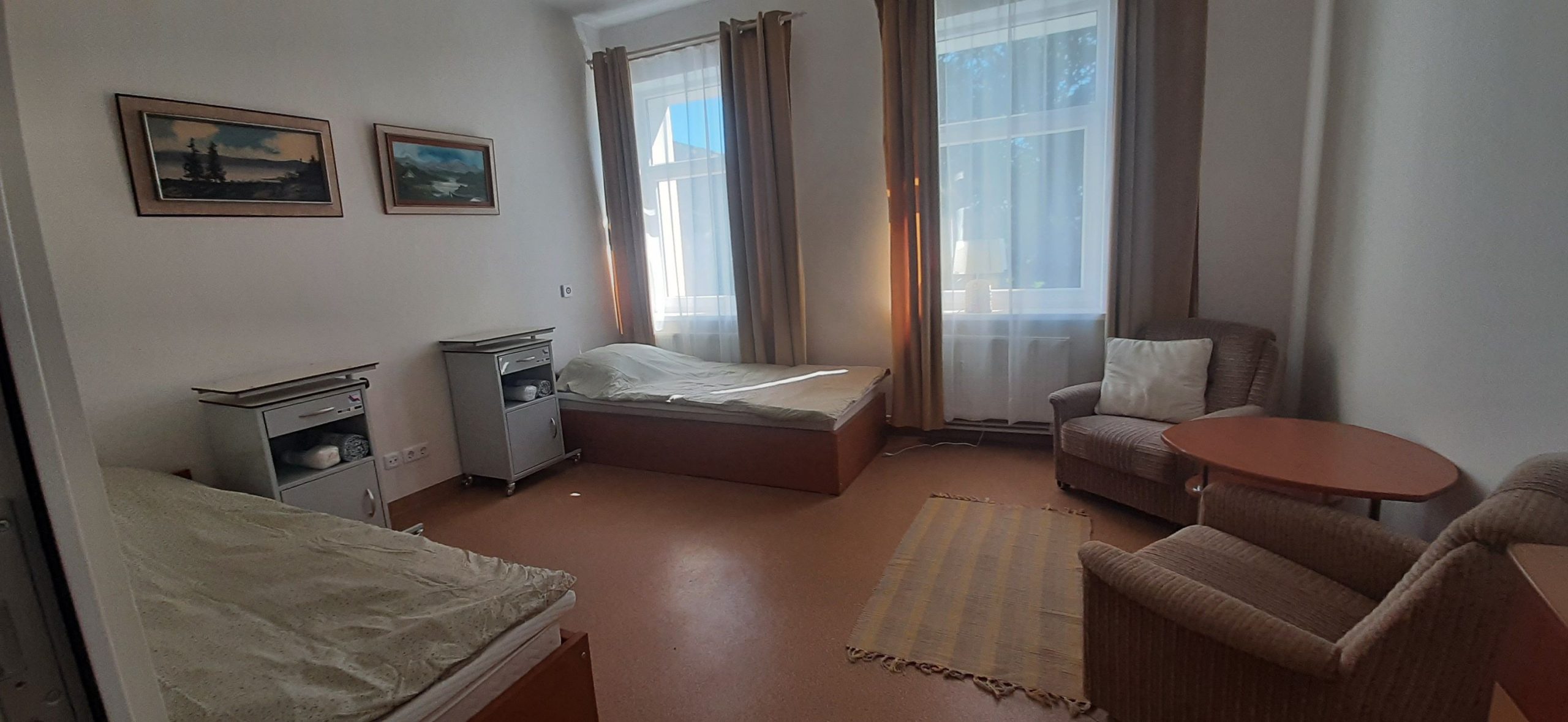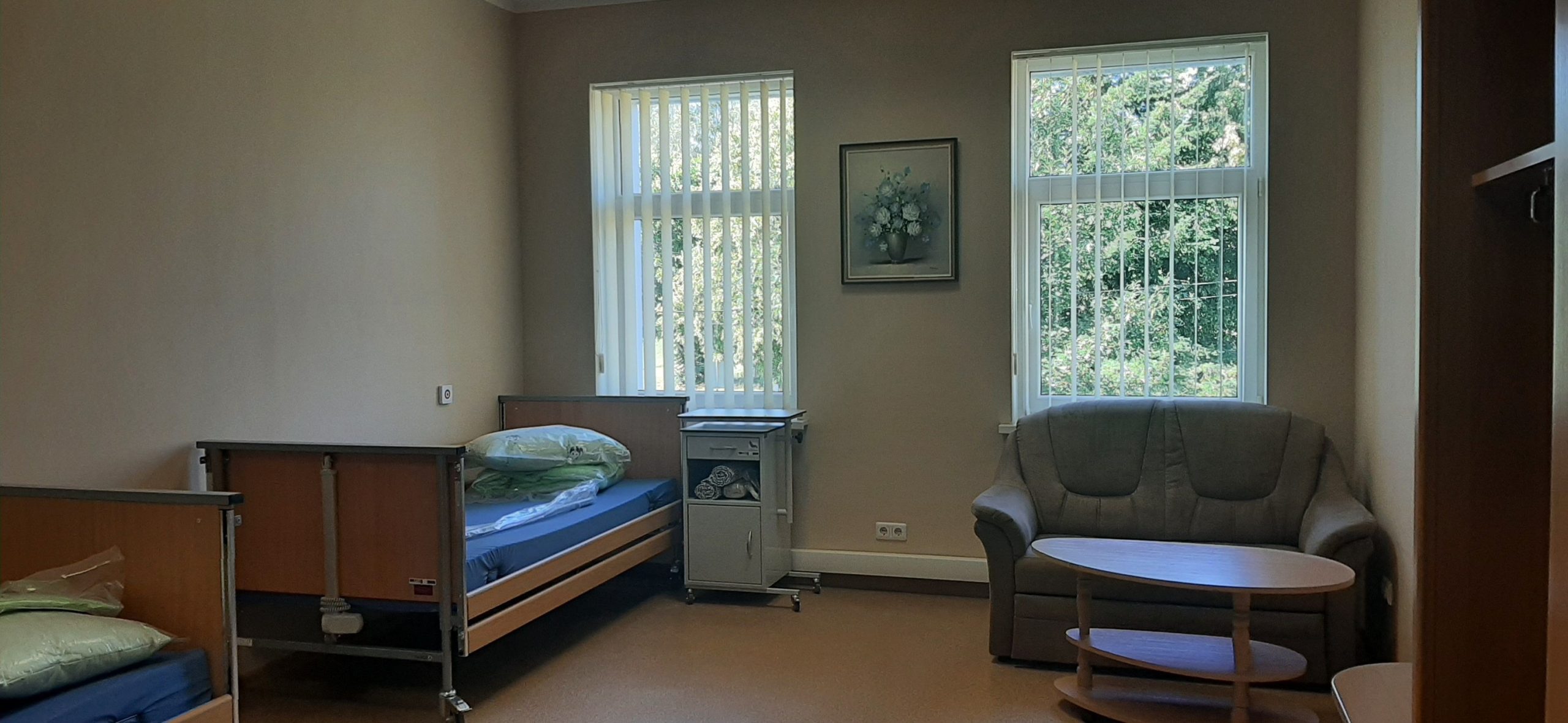 Kambariuose rasite elektra valdomas modernias lovas su patogiais čiužiniais, spinteles, spintas ir minkštasuolius su staliukais, TV ir radiją (pagal gyventojo pageidavimą), veidrodį. Visuose kambariuose įrengta personalo iškvietimo sistema. Savo gyventojams suteikiame galimybę atsivežti mylimą baldą, augalą ar kitus daiktus.